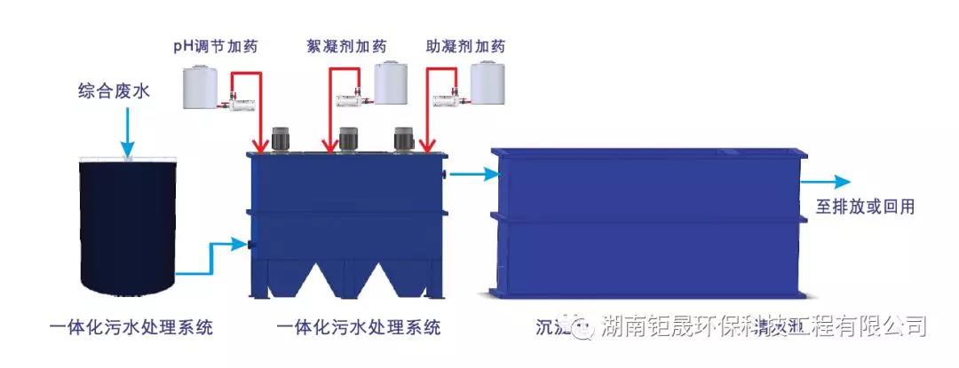 綜合廢水一般采用絮凝沉淀法,本公司一體化污水處理系統(tǒng)正是采用這一工藝,并在傳統(tǒng)的工藝中加以改進(jìn),形成本公司獨(dú)特的高效絮凝沉淀系統(tǒng)。絮凝沉淀是顆粒物在水中作絮凝沉淀的過程。在水中投加混凝劑后,其中懸浮物的膠體及分散顆粒在分子力的相互作用下生成絮狀體且在沉降過程中它們互相碰撞凝聚,其尺寸和質(zhì)量不斷變大,沉速不斷增加,形成絮凝體、礬花。絮凝體長(zhǎng)大到一定體積后即在重力作用下脫離水相沉淀,從而去除廢水中的大量懸浮物,從而達(dá)到水處理的效果。為提高分離效果,可適時(shí)、適量加入助凝劑。